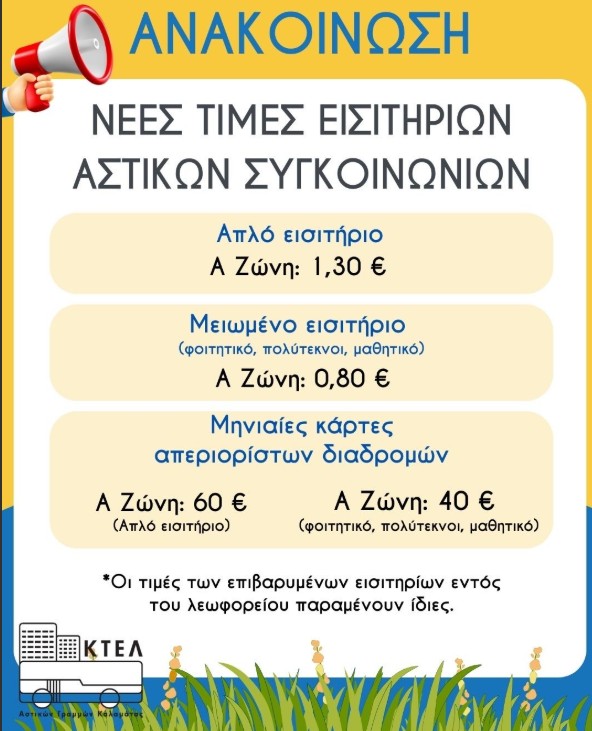 Ενημερωθείτε για τα δρομολόγια: www.astikoktelkalamatas.gr