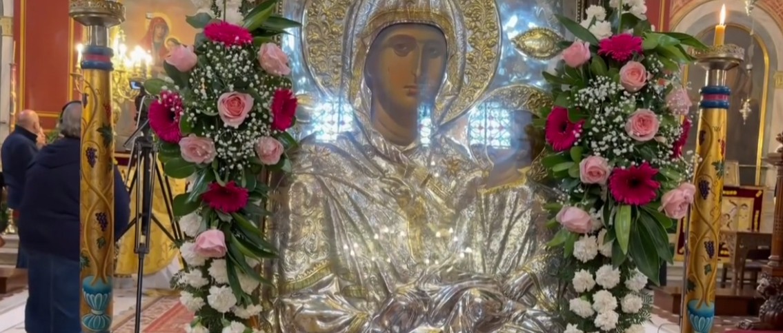 Με ιδιαίτερη συγκίνηση και θρησκευτική κατάνυξη η Πάτρα υποδέχθηκε το πιστό αντίγραφο της θαυματουργής εικόνας της Παναγίας Εσφαγμένης από την Ιερά Μεγίστη Μονή Βατοπαιδίου. Το πρωί πραγματοποιήθηκε πολυαρχιερατική θεία λειτουργία χοροστατούντος Επισκόπου Κερνίτσης κ. Χρυσάνθου.