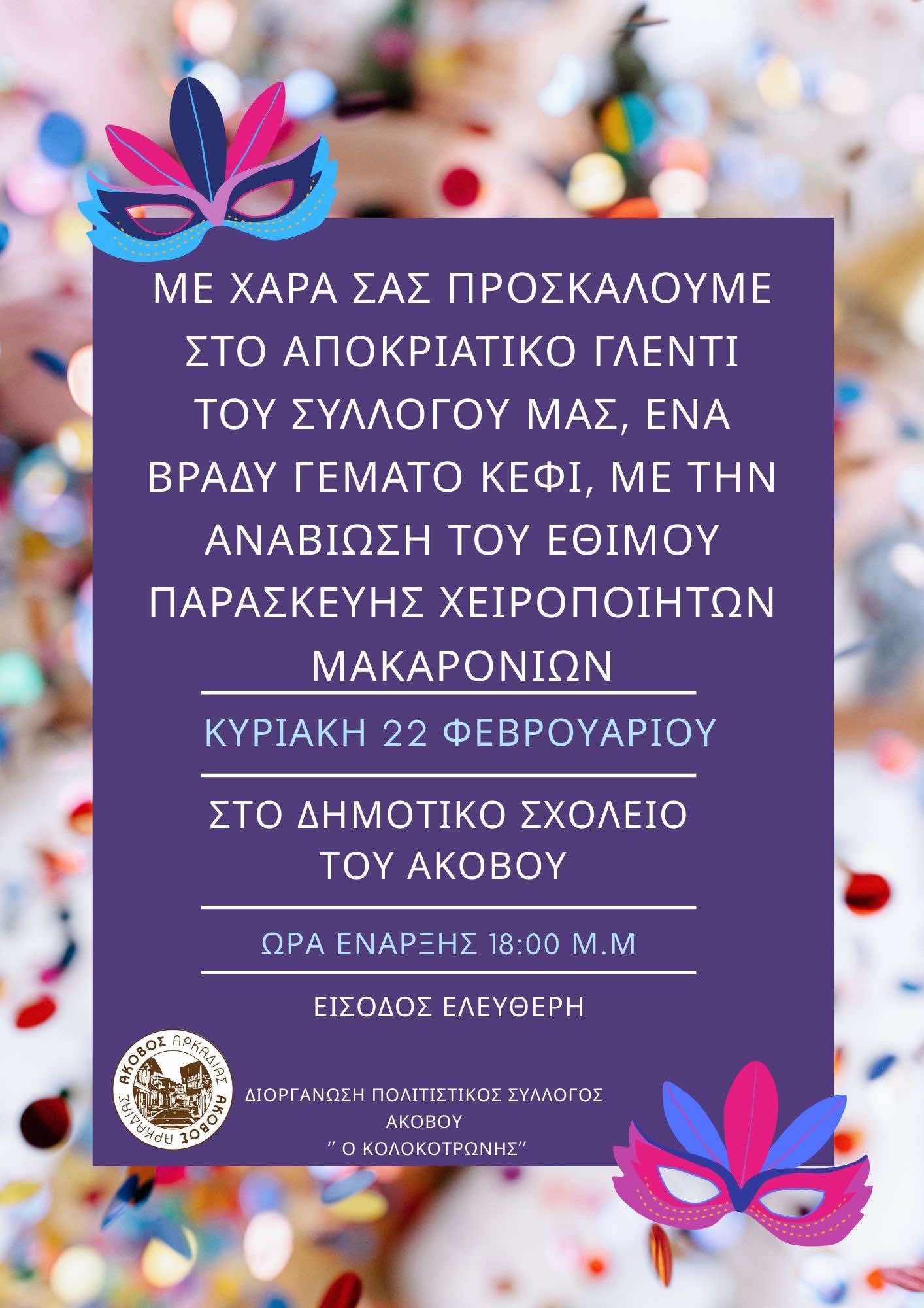 🎭 ΑΠΟΚΡΙΑΤΙΚΟ ΓΛΕΝΤΙ ΣΤΟΝ ΑΚΟΒΟ ΑΡΚΑΔΙΑΣ