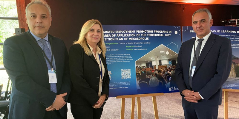 Μια ιδιαίτερα σημαντική διάκριση για τα Επιμελητήρια Αρκαδίας και Μεσσηνίας αποτέλεσε η παρουσίαση / προβολή του έργου των «Ολοκληρωμένων Προγραμμάτων προώθησης στην απασχόληση στην περιοχή εφαρμογής του Εδαφικού Σχεδίου Δίκαιης Μετάβασης Μεγαλόπολης» ανάμεσα στα εννέα (9) Ευρωπαϊκά έργα που επιλέχθηκαν στο πλαίσιο του 5ου Ετήσιου Συνεδρίου της Πλατφόρμας Δίκαιης Μετάβασης, που διοργάνωσε η Γενική Διεύθυνση Περιφερειακής και Αστικής Πολιτικής της Ευρωπαϊκής Επιτροπής στις Βρυξέλλες από τις 21 έως τις 23 Οκτωβρίου 2025.