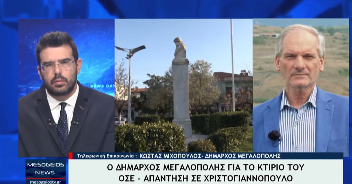 Σφοδρή επίθεση προς τον πρώην δήμαρχο Μεγαλόπολης Αθανάσιο Χριστογιαννόπουλο εξαπέλυσε από το κεντρικό δελτίο ειδήσεων του Mesogeiostv ο δήμαρχος Μεγαλόπολης Κώστας Μιχόπουλος με αφορμή το κτίριο του ΟΣΕ και τις μελέτες.