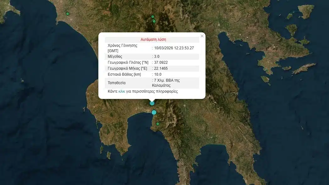 Δύο μικρής έντασης σεισμικές δονήσεις καταγράφηκαν σήμερα στην περιοχή της Καλαμάτας, με διαφορά λίγων ωρών μεταξύ τους, οι οποίες έγιναν αισθητές από κατοίκους της πόλης, παρά το χαμηλό τους μέγεθος.