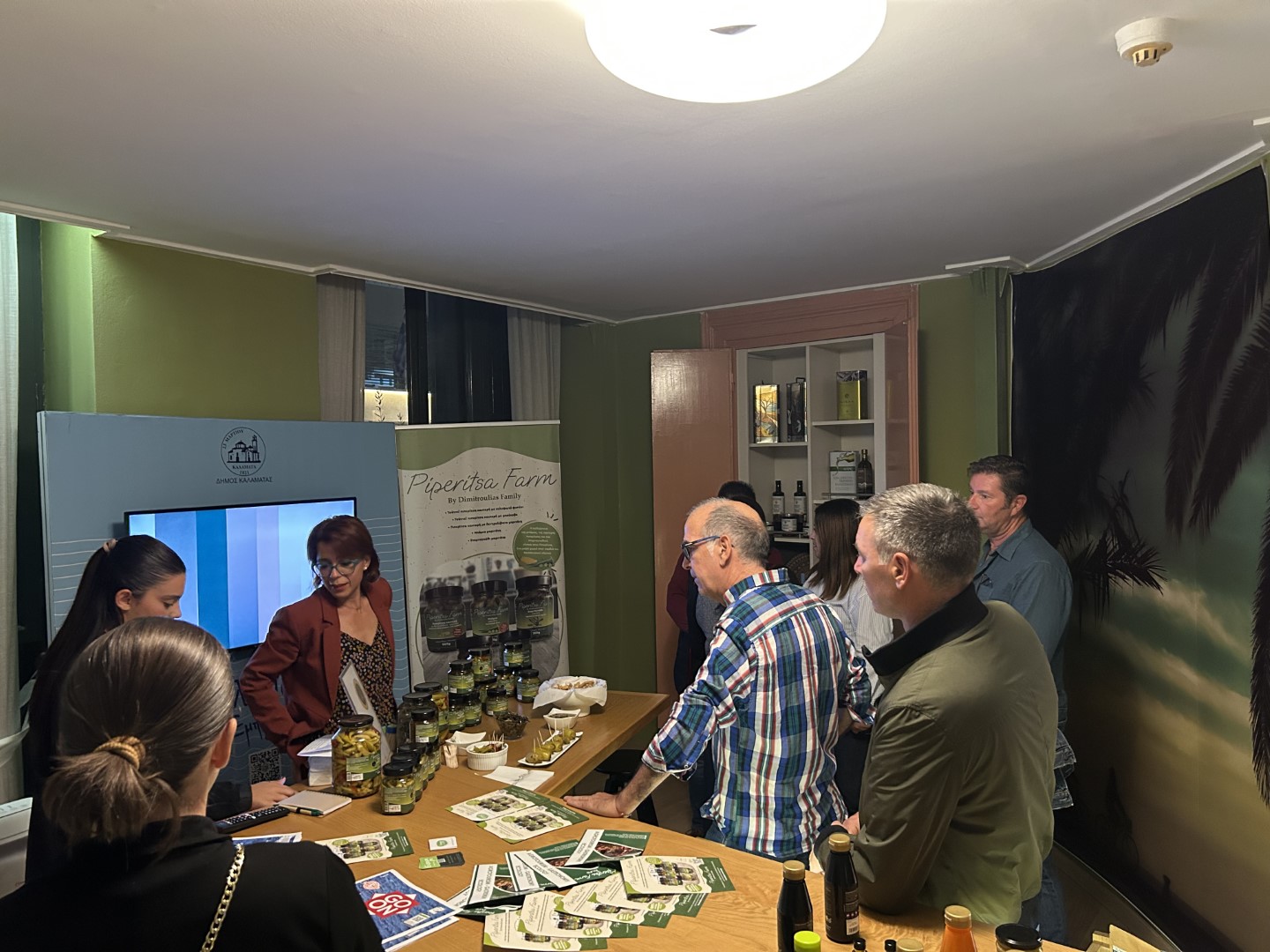 Η Piperitsa Farm, μια σύγχρονη αγροτουριστική επιχείρηση με έδρα το χωριό Πιπερίτσα Μεσσηνίας, παρουσίασε στο κοινό τα χειροποίητα προϊόντα της, που παράγονται με παραδοσιακές μεθόδους από πιπεριές, μπάμιες και σταμναγκάθι. Κατά τη διάρκεια της παρουσίασης, έγινε αναφορά στις διακρίσεις και τα βραβεία που έχουν αποσπάσει τα προϊόντα ενώ ακολούθησε δοκιμή από τους παρευρισκόμενους.