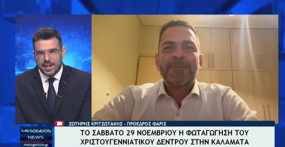 Το Σάββατο 29 Νοεμβρίου 2025 το απόγευμα θα φωταγωγηθεί το φυσικό Χριστουγεννιάτικο δέντρο στην Κεντρική Πλατεία Καλαμάτας, με ένα πλούσιο χριστουγεννιάτικο πρόγραμμα δράσεων και εκδηλώσεων, έχοντας ως ξεχωριστή στιγμή τη συναυλία του Γιώργου Τσαλίκη.