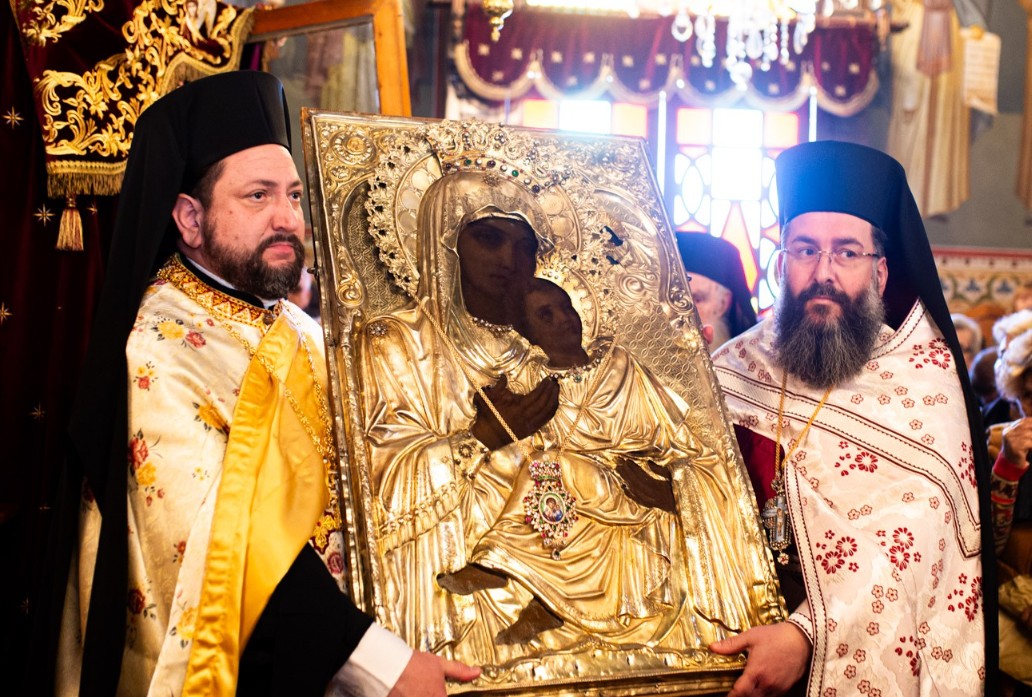 Μετά το πέρας της Θείας Λειτουργίας εψάλη ο Μικρός Παρακλητικός Κανόνας της Θεοτόκου και κατά την ώρα που οι χοροί των ιεροψαλτών έψαλαν το Μεγαλυνάριο της Πολιούχου της Καλαμάτας “Δεύτε την εικόνα Υπαπαντής…” με ρίγη συγκινήσεως οι κληρικοί μετέφεραν την Ιερά Εικόνα της Παναγίας από τον θρόνο της λιτάνευσης στον μόνιμο Θρόνο Της.