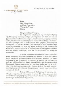 Ως εκπρόσωπος ενός θεσμού, τής τοπικής Εκκλησίας τής Μεσσηνίας, ό όποιος κλήθηκε να υπηρετήσει τον λαώντου και να βρίσκεται πάντοτε δίπλα στις ανάγκες, στιςδοκιμασίες, στις χαρές και στις λύπες, λαμβάνω και πάλι το θάρρος να απευθυνθώ σέ Σας για να εκφράσω τηνπαράκληση ώστε να επιδείξετε και πάλι έμπρακτα, τοεγνωσμένο ενδιαφέρον Σας για την Μεσσηνία, σέ ένα θέμα το όποιο εμπίπτει στην άμεση αρμοδιότητά Σας, αυτό τής άρτιας λειτουργίας τού Νοσοκομείου Καλαμάτας, αφού ως γνωστόν σέ λίγο καιρό θαδημιουργηθούν και άλλα κενά σέ ιατρικές ειδικότητες, όπως και σέ νοσηλευτικό και διοικητικό προσωπικό.
