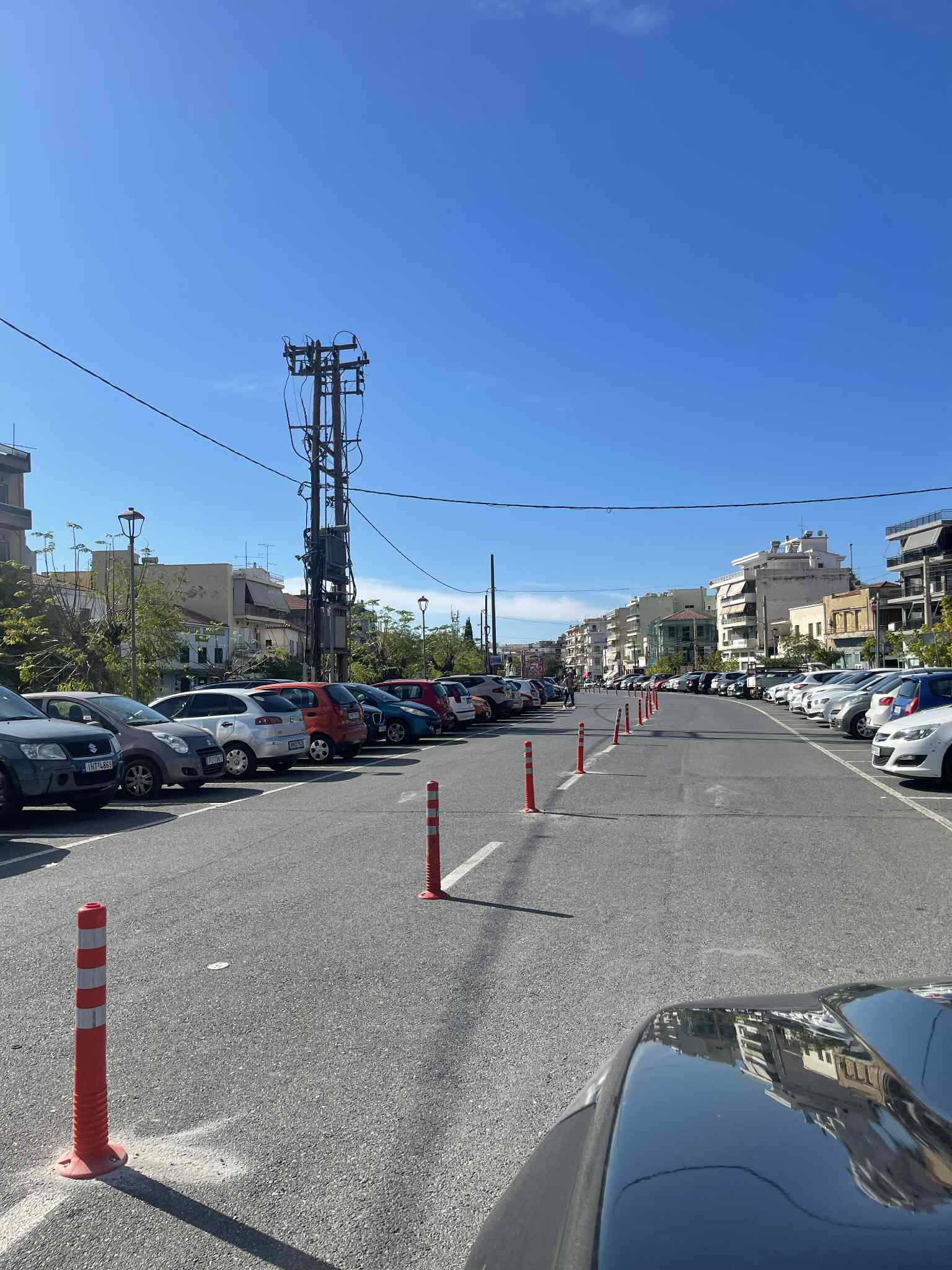 Μετά από πολλές κλήσεις και αφαίρεση πινακίδων η δημοτική αστυνομία τοποθέτησε Κολωνάκια ώστε να μην παρκάρουν στο κέντρο του πάρκινγκ παράνομα οδηγοί!! Ας ευχηθούμε να μην τα σπάσουν!