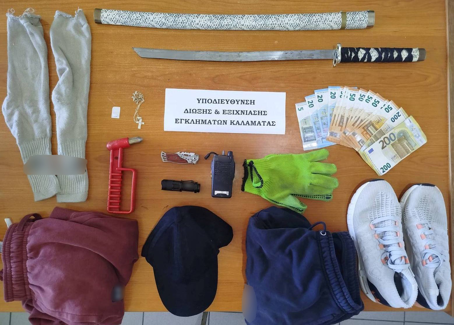 • πλήθος διαρρηκτικών εργαλείων και ρουχισμού.