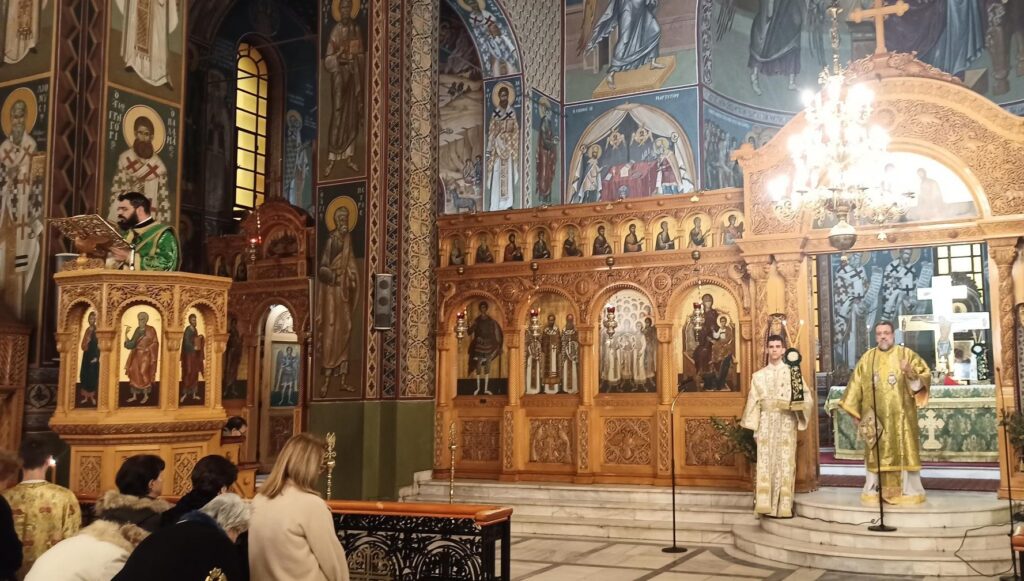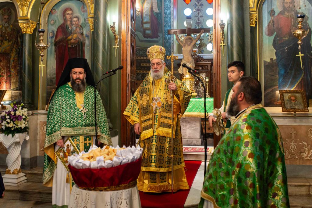 Στον Ιστορικό Ιερό Ναό του Αγίου Νικολάου, τον επονομαζόμενο “Φλαρίου”, στο κέντρο της Καλαμάτας, χοροστάτησε στον Όρθρο και προέστη στην Θεία Λειτουργία, ο Σεβ. Μητροπολίτης Γέρων Λεοντοπόλεως κ. Γαβριήλ, εκ του Πατριαρχείου Αλεξανδρείας, πλαισιωμένος από τον Πρωτοσύγκελλο της Ιεράς Μητροπόλεως Μεσσηνίας και προϊστάμενο του Ναού Αρχιμ. Φίλιππο Χαμαργιά και τον συνεφημέριο του Πρωτοπρεσβύτερο Γεώργιο Γιαννόπουλο.