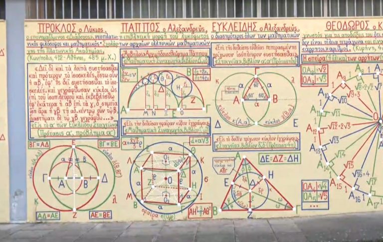 Οι τοίχοι στο γυμνάσιο Παραλίας στην Καλαμάτα, δε θυμίζουν τους συνηθισμένους σχολικούς τοίχους. Χρώματα, σχήματα και αποσπάσματα αρχαίων κειμένων εκεί όπου η γεωμετρία συναντά τη φιλολογία και μετατρέπονται οι τοίχοι σε πίνακα ζωντανής καλλιτεχνικής έμπνευσης για τους μαθητές και τις μαθήτριες.