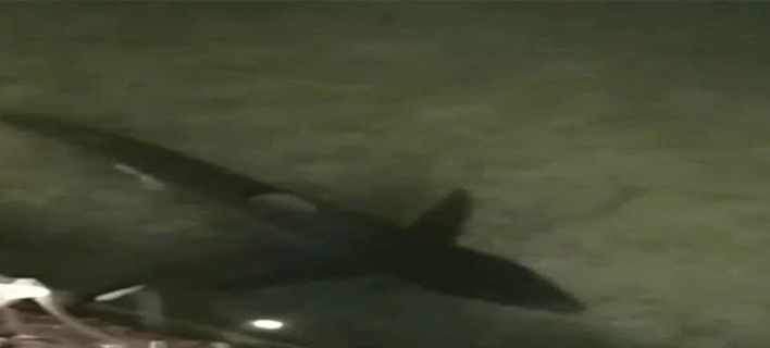 Ένας από τους κατοίκους της πόλης τράβηξε video με τον καρχαρία να κινείται πολύ κοντά στην επιφάνεια, ανάμεσα στις βάρκες το βράδυ της περασμένης Κυριακής.