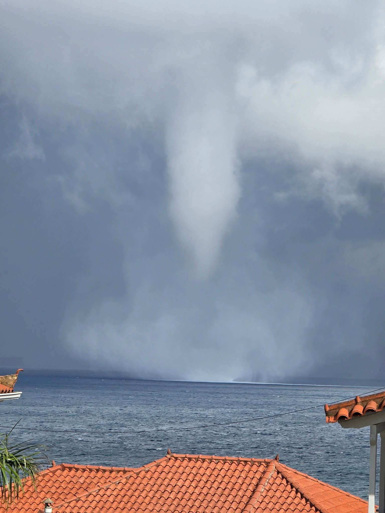Ένας εντυπωσιακός υδροστρόβιλος σχηματίστηκε στη θάλασσα κατά τη διάρκεια της κακοκαιρίας που έπληξε χθες Πέμπτη 2.10 τη Μεσσηνία, μαγνητίζοντας τα βλέμματα και τις φωτογραφικές μηχανές των κατοίκων σε Χράνους και Επισκοπή. Ευτυχώς, το φαινόμενο εκδηλώθηκε μακριά από κατοικημένες περιοχές, αφήνοντας πίσω του μόνο εικόνες θαυμασμού.»