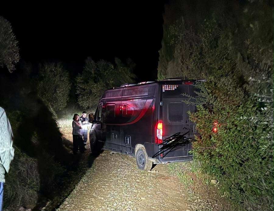 Το αυτοκινούμενο τροχόσπιτο στο οποίο επέβαιναν οι δύο Γερμανοί τουρίστες είχε ακινητοποιηθεί σε σημείο με ανωφέρεια και λάσπη, καθιστώντας αδύνατη την προσέγγιση κοινού οχήματος οδικής βοήθειας.