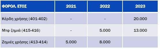 Ατομική επιχείρηση παρουσιάζει για τα φορολογικά έτη 2021 και 2022 ζημιές ενώ για το φορολογικό έτος 2023 κέρδη από επιχειρηματική δραστηριότητα ως ακολούθως: