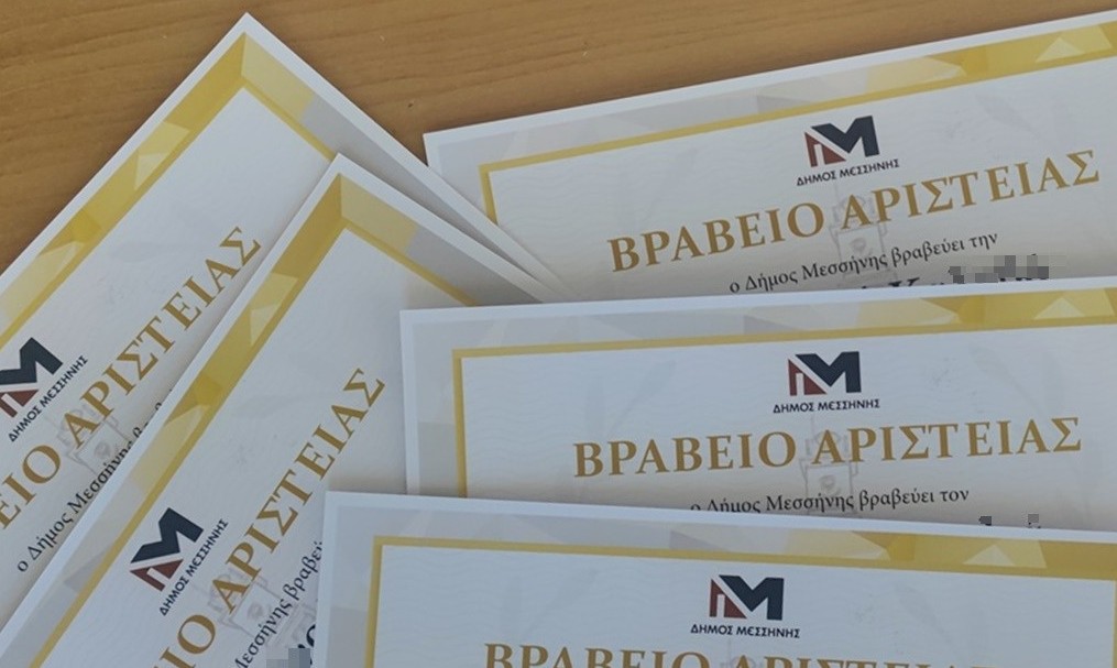 Έπαινο θα λάβουν η/ο πρώτη/ος με την υψηλότερη βαθμολογία στην κάθε Ομάδα Προσανατολισμού των ΓΕΛ του Δήμου (Σπουδών Υγείας, Θετικών Σπουδών, Ανθρωπιστικών Σπουδών, Σπουδών Οικονομίας Πληροφορικής) καθώς και ο πρώτος σε βαθμολογία επιτυχόντας του ΕΠΑΛ Μεσσήνης. Ο έπαινος συνοδεύεται από το χρηματικό ποσό των 700 ευρώ.