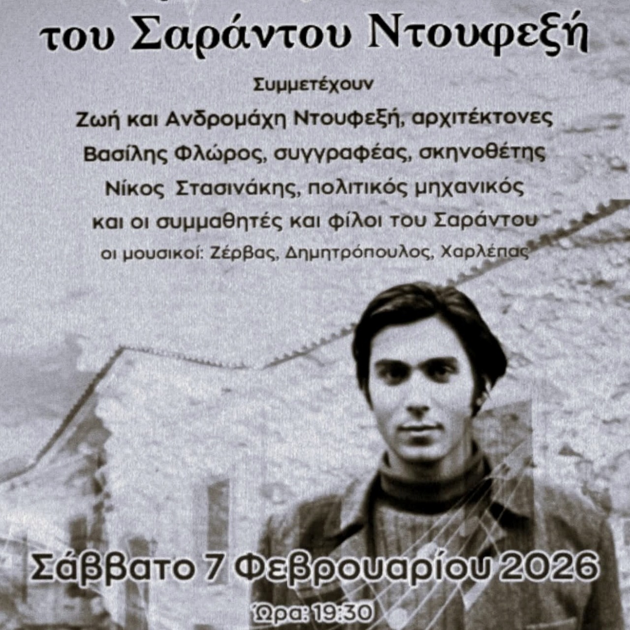 Οι Φίλοι του Μουσείου Χαρακτικής «Τάκης Κατσουλίδης», υπό την αιγίδα του Δήμου Μεσσήνης, διοργανώνουν το Σάββατο 7 Φεβρουαρίου 2026 και ώρα 19:30 στο Μουσείο, μια βραδιά αφιερωμένη στο ποιητικό έργο του Σαράντου Ντουφεξή. Ο Σαράντος Ντουφεξής γεννήθηκε και μεγάλωσε στη Μεσσήνη, σπούδασε αρχιτέκτονας, αλλά αφιέρωσε μεγάλο μέρος της ζωής του στην ποίηση, εκδίδοντας δέκα ποιητικές συλλογές . Οι φίλοι του και συμμαθητές του που συμμετέχουν, τιμώντας την μνήμη του (έφυγε από τη ζωή το 2025), παρουσιάζουν το πνευματικό του έργο, ενθυμούμενοι παράλληλα τα χρόνια της αθωότητας μαζί του. Το έργο του θα αναλύσει ο Βασίλης Φλώρος συγγραφέας, σκηνοθέτης. Συμμετέχει μικρό μουσικό σχήμα.