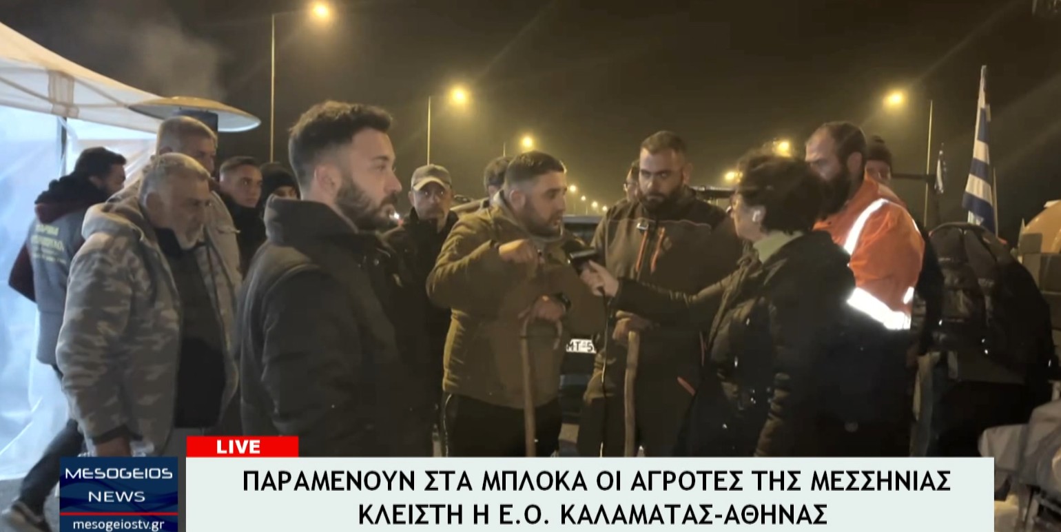 Συνεχίζεται το μπλόκο των αγροτών στον αυτοκινητόδρομο, στο ύψος της Θουρίας, με τους αγρότες να μιλόυν ζωντανά στο κεντρικό δελτίο ειδήσεων του Mesogeiostv και να αναφέρουν ότι δεν θα φύγουν από το σημείο αν δεν δικαιωθούν τα αιτηματά τους.
