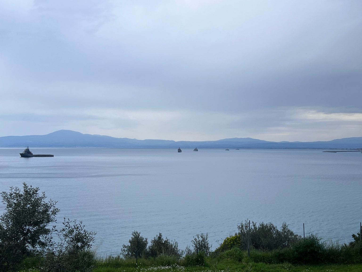 Το μεσημέρι της Τρίτης 17 Μαρτίου έκαναν την εμφάνισή τους συνολικά πέντε πολεμικά σκάφη διαφόρων τύπων στον Μεσσηνιακό κόλπο, σε μικρή απόσταση από την πόλη της Καλαμάτας, τα οποία βρίσκονται αρόδο του λιμανιού της μεσσηνιακής πρωτεύουσας.