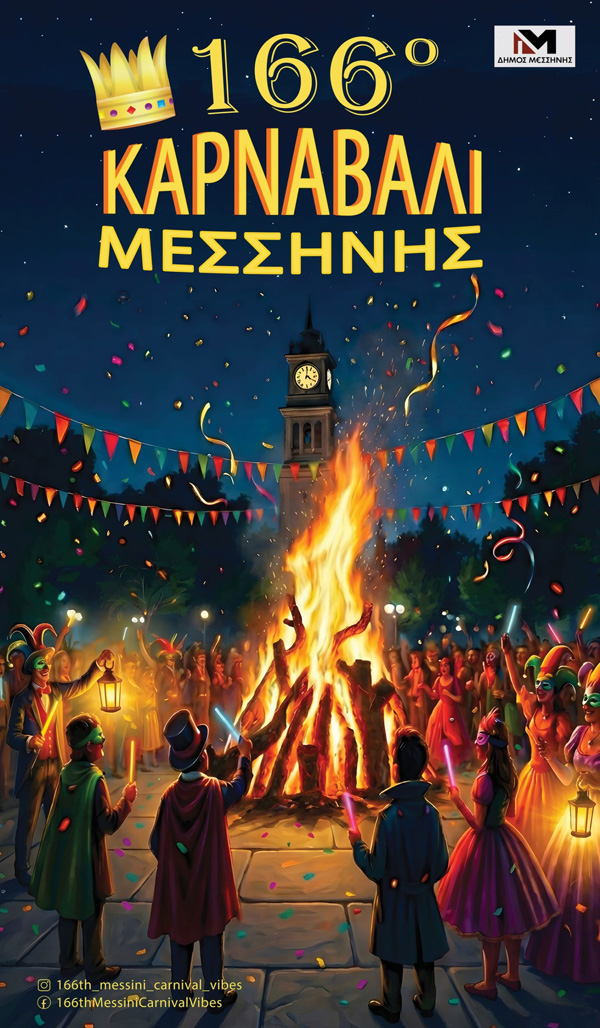 20:00 Αναβίωση Παραδοσιακών δρώμενων «Φάγατε – Φάγαμε» & «Τυρής –Ταραμάς» από το Σωματείο Εθελοντών Μεσσήνης, στη συμβολή των οδών Πολυτεχνείου και Τενέδου.