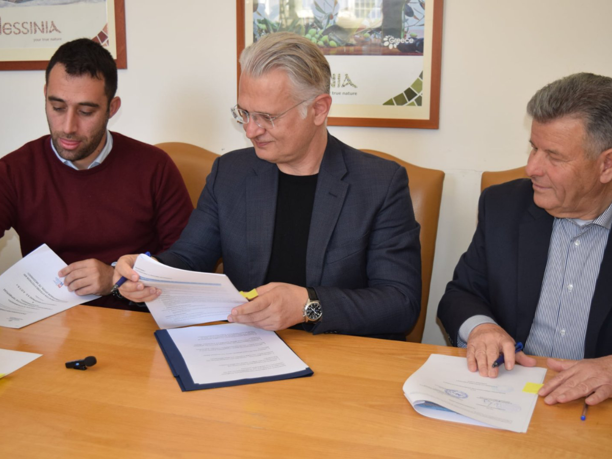 Τη σύμβαση υπέγραψαν ο Περιφερειάρχης Πελοποννήσου Δημήτρης Πτωχός, ο Αντιπεριφερειάρχης Π.Ε. Μεσσηνίας Ευστάθιος Αναστασόπουλος και ο Πρόεδρος της Αναπτυξιακής Μεσσηνίας Α.Ε. Αναστάσιος Σαρδέλης, παρουσία Αντιπεριφερειαρχών και Περιφερειακών Συμβούλων.