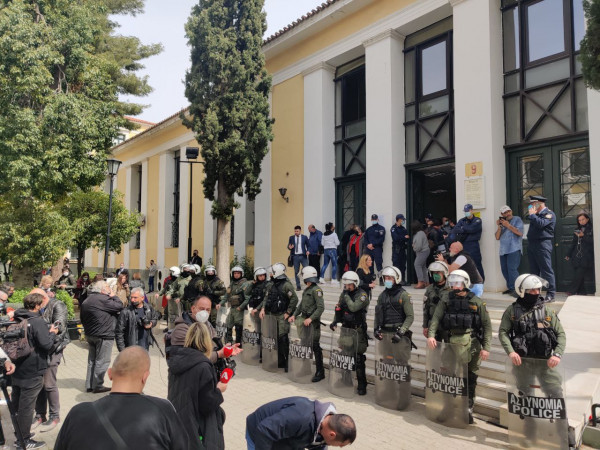 Διμοιρίες των ΜΑΤ και μονάδες της ΟΠΚΕ είχαν αποκλείσει την είσοδο στο κτίριο 9 όπου απολογείται η 33χρονη, ενώ σύμφωνα με πληροφορίες σημειώθηκαν σπρωξίματα την ώρα που η κατηγορούμενη οδηγούνταν προς την ανακρίτρια.