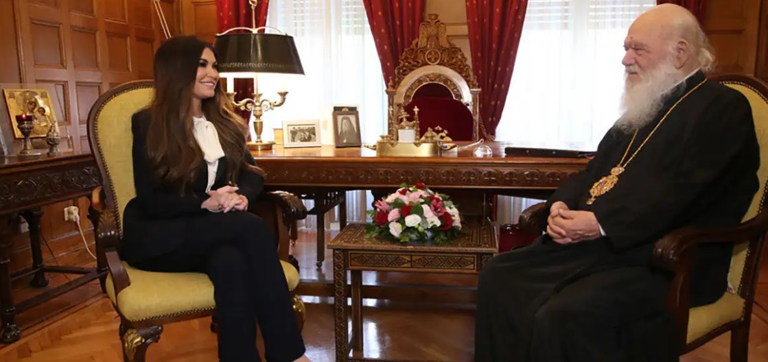 Τα πρώτα λόγια του Αρχιεπίσκοπου Ιερώνυμου έξω από το γραφείο ήταν: «Ο θεός να σας ευλογεί. Να περάσετε καλά στην Ελλάδα» με την πρέσβειρα να απαντάει «Ευχαριστω. Ειναι θαυμάσιο που είμαι εδώ μαζί σας».