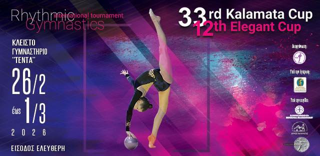 Στην Καλαμάτα και συγκεκριμένα στο Κλειστό Γυμναστήριο «Τέντα» θα χτυπά από σήμερα Πέμπτη 26 Φεβρουαρίου μέχρι και την Κυριακή 1 Μαρτίου 2026 η καρδιά της ρυθμικής γυμναστικής, καθώς η Μεσσηνιακή πρωτεύουσα θα φιλοξενήσει για 33η χρονιά το Διεθνές Κύπελλο «Kalamata Cup» και για 12η συνεχόμενη φορά το «Elegant Cup».