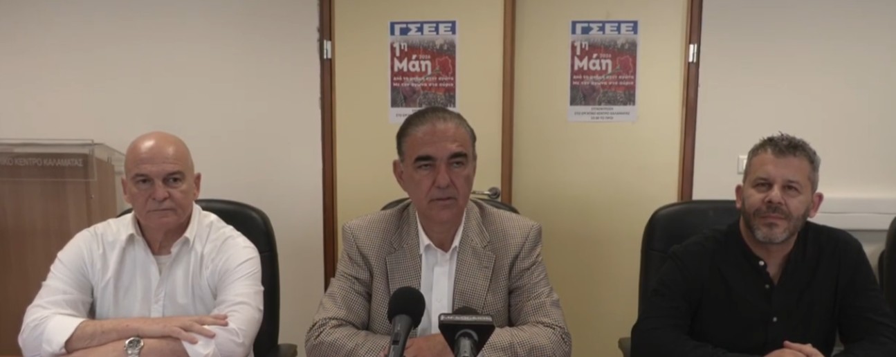 Σε απεργιακή συγκέντρωση για την εργατική Πρωτομαγιά την Παρασκευή 1η Μάη, στις 10:30, καλεί το Εργατικό Κέντρο Καλαμάτας έξω από το κτήριό του.