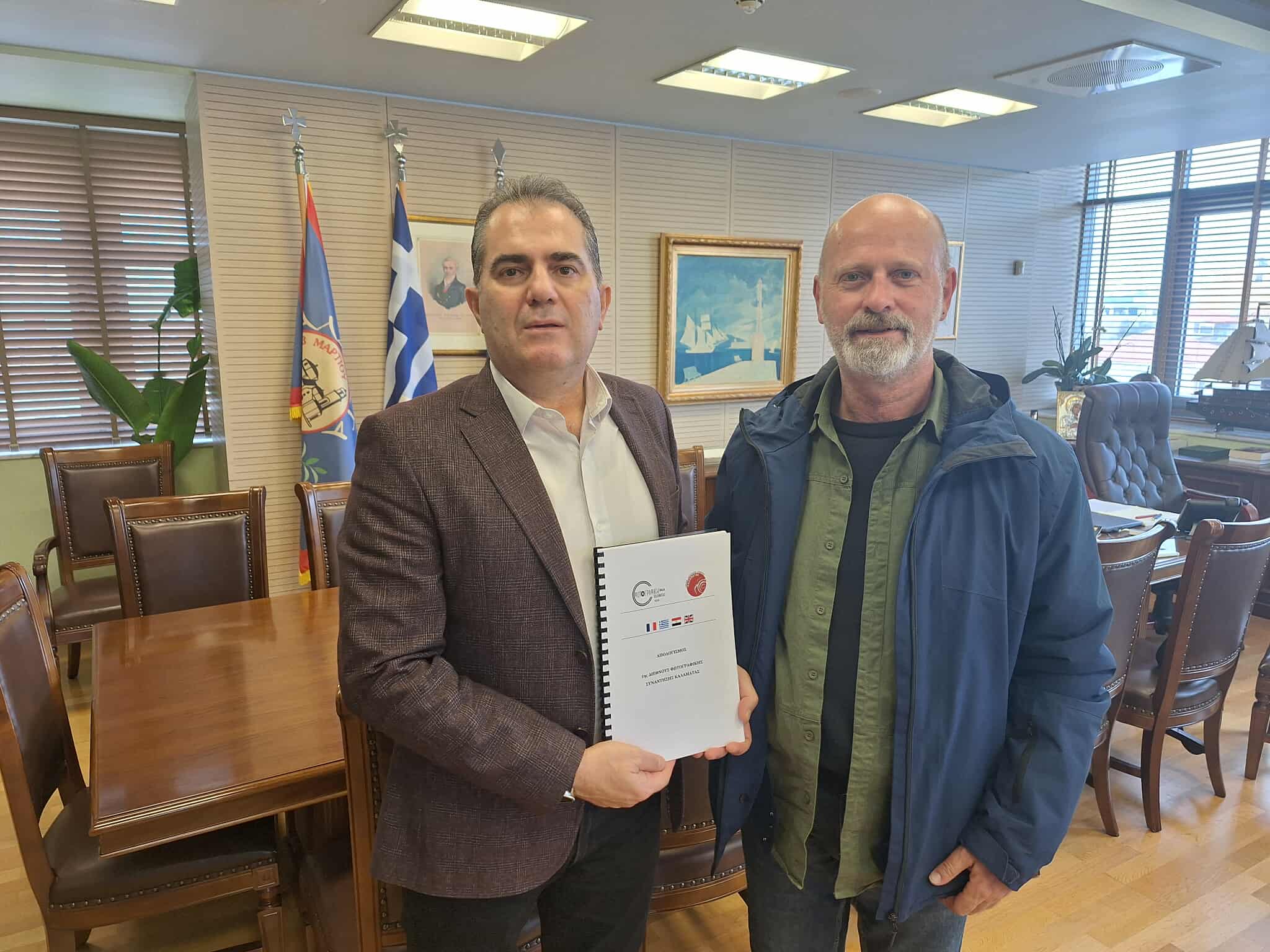 Τον επίσημο απολογισμό των δράσεων της 1ης Διεθνούς Φωτογραφικής Συνάντησης Καλαμάτας που έλαβε χώρα στο Μέγαρο Χορού το φθινόπωρο του 2025 παρέδωσε ο πρόεδρος της Φωτογραφικής Ομάδας Καλαμάτας Νίκος Ηλιόπουλος στον Δήμαρχος Καλαμάτας Θανάσης Βασιλόπουλο σήμερα, Παρασκευή 16 Ιανουαρίου 2026.