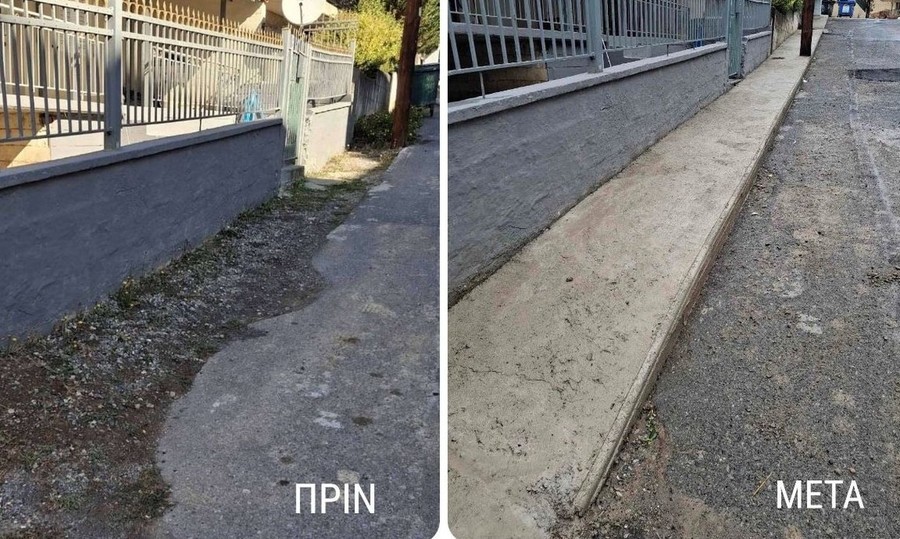 «Με συνέπεια και πρόγραμμα συνεχίζονται οι μικρές αλλά ουσιαστικές παρεμβάσεις του Δήμου μας στις γειτονιές μας. Συγκεκριμένα, μετά από χρόνιο αίτημα των κατοίκων και δεδομένου ότι δεν υπήρχε καν πεζοδρόμιο, τα συνεργεία του Δήμου προχώρησαν στην κατασκευή πεζοδρομίου επί των οδών Ευτέρπης και Δαιδάλου.