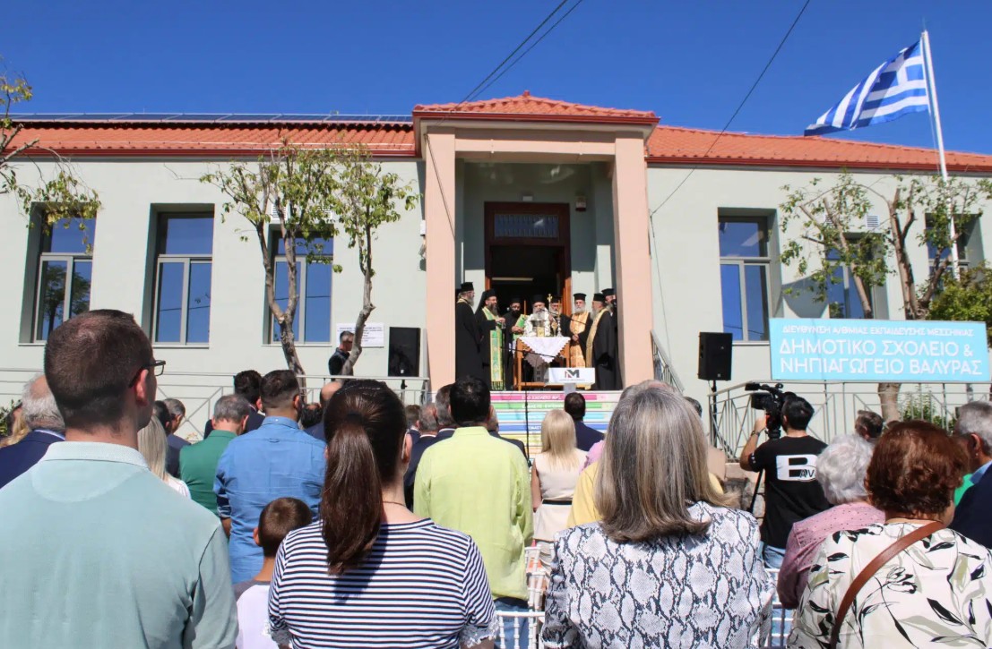 Μέσα σε κλίμα χαράς και συγκίνησης εγκαινιάστηκε χθες, Κυριακή 5 Οκτωβρίου 2025, το πλήρως ανακαινισμένο και ενεργειακά αναβαθμισμένο Νηπιαγωγείο και Δημοτικό Σχολείο Βαλύρας, παρουσία πλήθους κόσμου και πολλών μαθητών. Τα εγκαίνια τέλεσαν οι Σεβασμιώτατοι Μητροπολίτες Μονεμβασίας και Σπάρτης κ. Ευστάθιος –καταγόμενος από τη Βαλύρα– και Μεσσηνίας κ. Χρυσόστομος.