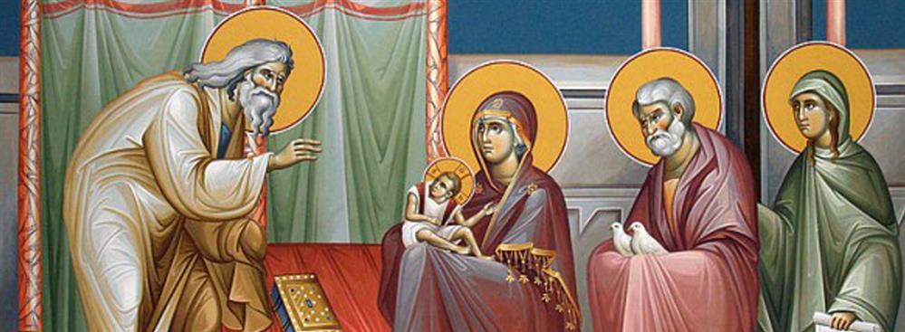 Το εκκλησιαστικό γεγονός της Υπαπαντής του Κυρίου, που εξιστορεί ο Ευαγγελιστής Λουκάς (β, 22-38), συνέβη σαράντα ημέρες μετά τη γέννηση του Ιησού. Επειδή, σύμφωνα με το μωσαϊκό νόμο, ήταν το πρώτο παιδί της οικογένειας και μάλιστα αγόρι, έπρεπε να αφιερωθεί στον Θεό και συγχρόνως οι γονείς να προσφέρουν σε Αυτόν μία μικρή θυσία από ένα ζευγάρι τρυγόνια ή δύο μικρά περιστέρια. Το ζευγάρι του Ιωσήφ και της Μαρίας προϋπάντησε στο ναό ο υπερήλικας Συμεών, ο οποίος δέχθηκε τον Ιησού στην αγκαλιά του, η οποία φωτίστηκε από το Άγιο Πνεύμα. Ο πρεσβύτης ιερέας είχε λάβει υπόσχεση από τον Θεό ότι δεν θα πεθάνει, προτού δει τον Χριστό και Τον ευχαρίστησε με τα λόγια: